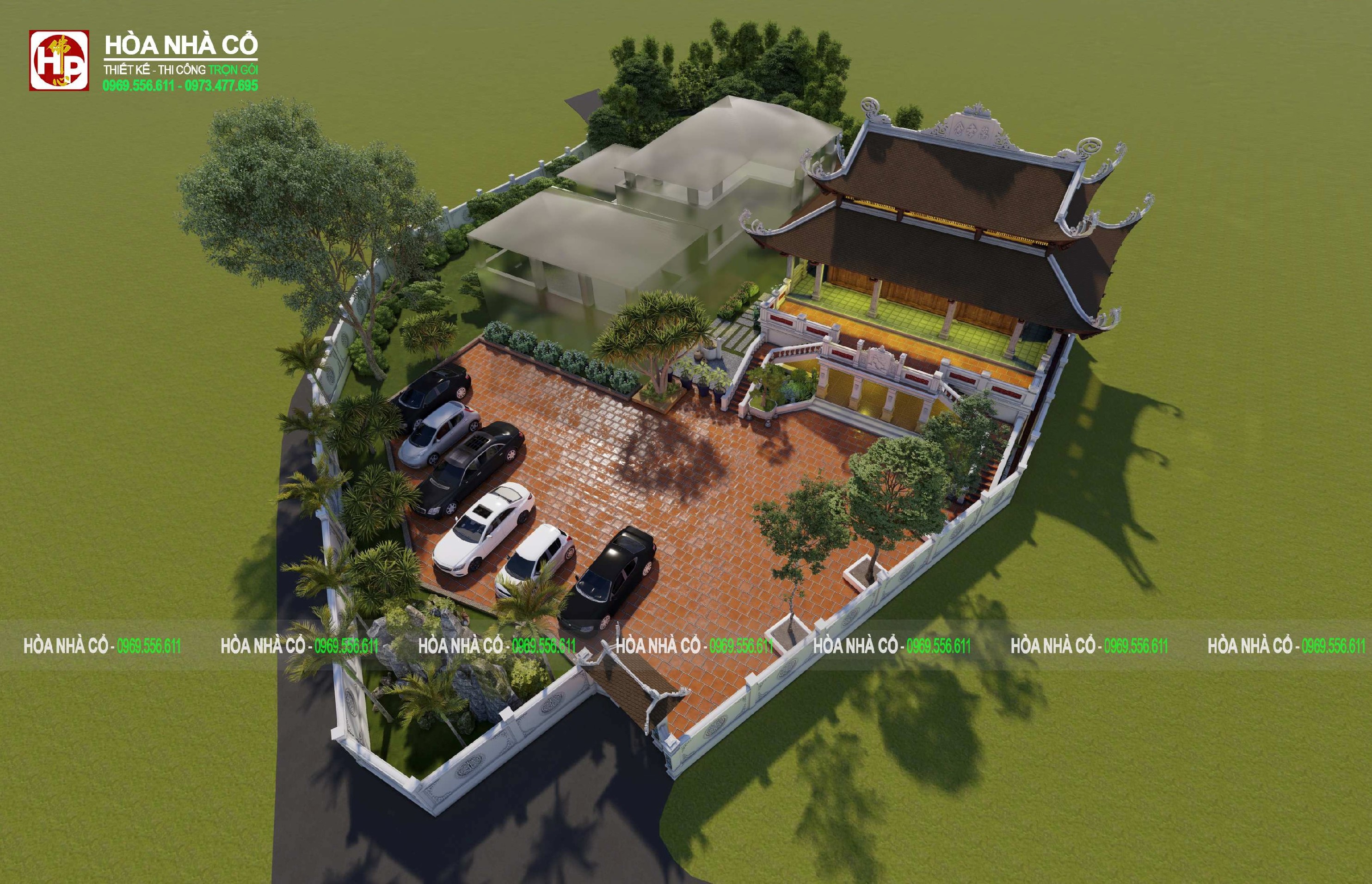 Mẫu thiết kế nhà 3 gian truyền thống kết hợp biệt thự sân vườn