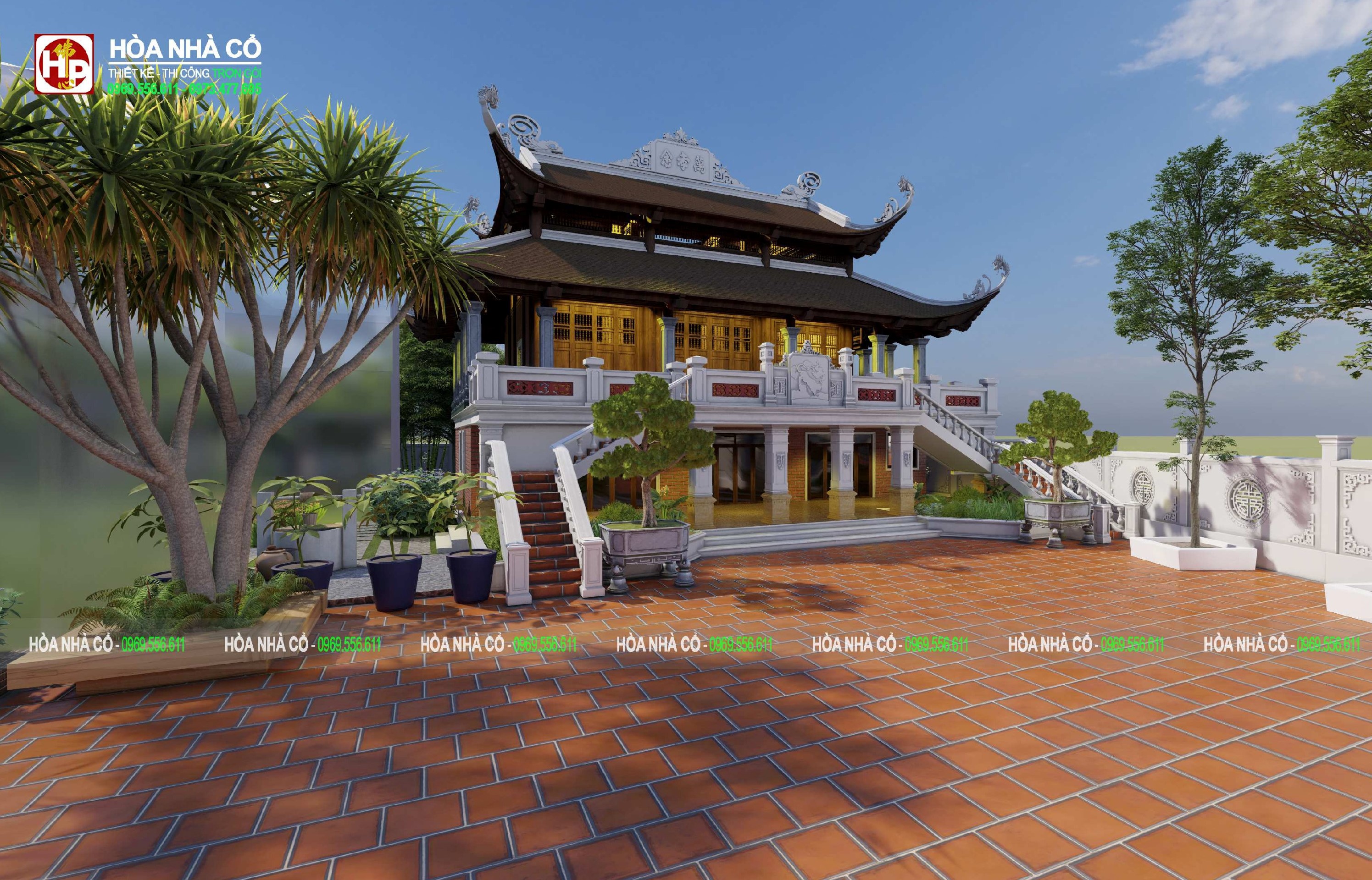 Với mẫu thiết kế nhà thờ họ 3 gian 2 tầng dưới đây là mẫu thiết kế nhà thờ họ 3 gian mái đao truyền thống được cách tân thành 2 tầng để đảm bảo yếu tố công năng sử dụng, mặt bằng diện tích và vẫn mang nét truyền thống tâm linh Á Đông của người Việt Nam.